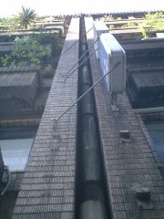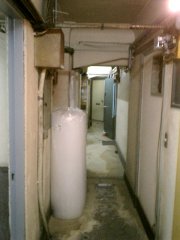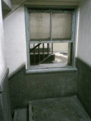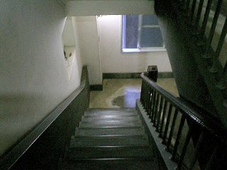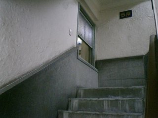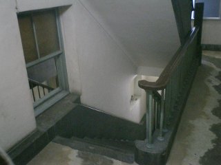 これは外へとつながる窓ではなく、隣のビルへの窓でもなく、“自分自身”のビルにつながる窓だった。ちょうど対称的に階段も作られているので、まるで鏡でも見ているような錯覚を感じる。増築なのであれば、わざわざ同じような階段を作ることはなかったのではないかと思う。実際エレベータは一方の建物にしかない。もし非常階段のつもりで作ったのであれば、既存の階段のすぐ隣ではなく、離れたところに作った方が意味があっただろうに・・・などと、設計者への疑問を投げかけつつ、しばらくこの不思議な空間を眺めていた。
