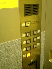 このビルで最も特徴的なものといえば、やはりエレベータだろう。 パッと見た目では、扉上部のかごの停止階を指し示す表示器は独特であること以外は、そんなに特徴的な感じはしなかった。しかし、よく見ると、他のエレベータとまったく違ったところがあった。