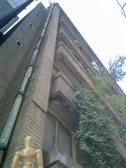 この建物のことを知ったのは、「タモリ倶楽部」という深夜のテレビ番組だった。 建物の紹介ではなく、使用されているエレベータの扉がいまだに手動で、しかもフロアによっては止まらない?といった内容だった。 当然?気になる話ではあったが、放送はあっという間だったし、すぐに行く機会はないだろうと思っていたので、あまり意識して記憶はしていなかった。 その後、ある展覧会で出会った方の個展が、とても個性的なビルで開かれているということで、詳しく話を伺ってみると、なんとその番組で取り上げられたビルだという。 そのビルは、「奥野ビル」という。 銀座通り(中央通り)からちょっと奥まったで、賑やかな通りとは一線を画す場所にあった。たいたいの場所しか記憶していなかったが、遠くからでもしっかりと存在感がある佇まいだった。 まず、外観を眺めてみる。
