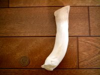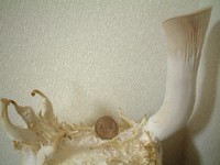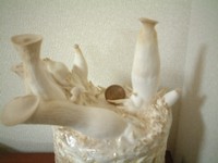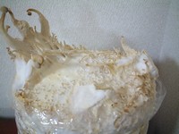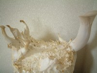 だんだん表面全体が白くなり始めた。これだと、カビなんだか、エリンギが成長しているのか、全然わからない。FAQには、「かびが生えてきたら?」という質問が書かれていたので、かびが生えることも考えられるわけで、ますます区別が付かない。 |