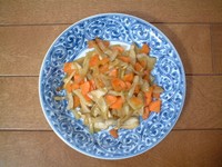 さらに翌日になって、少し大きくなった分も収穫。これで料理しやすくなったと言うことで、その日の夜は、炒め物として頂戴する。なかなか歯ごたえがあり、美味しかった。 |