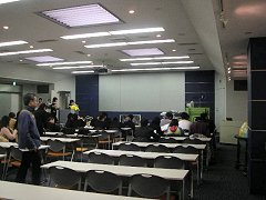 教室のようなセミナールームのようなところに通される。すでにたくさんの人たちが席に着いていた。中学生や高校生くらいのグループ、マニアの“大きな”お友達、おそらくキャビンアテンダントを目指していそうな、若い女性の二人や三人組といった顔ぶれ。教室にはいろいろな資料が置かれていて、手に取ってみることができる。 |