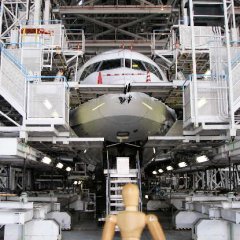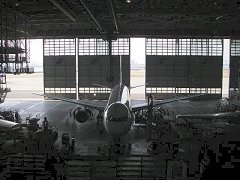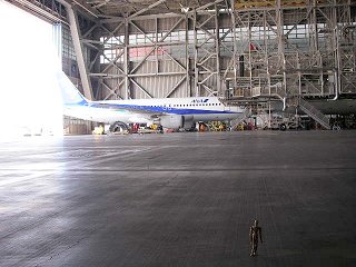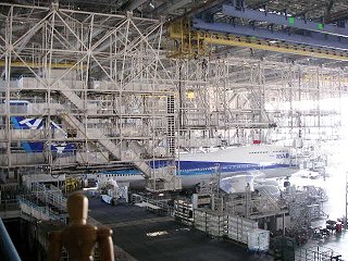 | 先述の通りこの建物のせいで?感覚が麻痺しているが、2007年時点で使用されている商用飛行機の中で、世界最大のボーイング747型機が、すっぽりと建物の中に収まっている。垂直尾翼を目の前にすると、こんなに大きかったんだ…ということを改めて実感する。 | ||
