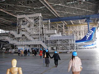 | 全日空(ANA)の「機体メンテナンスセンター」は、平日の1日3回(10:00〜/13:00〜/15:00〜)、事前に申し込むと無料で見学させてくれる。以前から見てみたかったけれど、平日に限るというのがネックだった。 インターネット上で申し込みができるのはありがたく、今回、なんとか有給休暇を取得することができる機会があったので、なんとか調整して申し込むことができた。 |