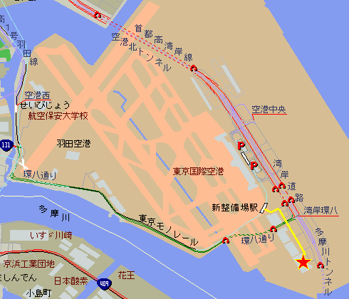 地図が古くて滑走路やターミナルビルの数が足りないが、位置関係はこんな感じ。 |