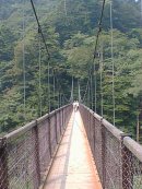 ![]() 日本一(左)とそうじゃない(右)吊り橋(塩原) 最初日本一の吊り橋だと思って渡る。けど、ほんとにこれが日本一なの?と思いながら渡っていると、遠くに大きな吊り橋を見つける。あらら、あっちが日本一なのね…と、その日本一の吊り橋に向かうが、その日本一の吊り橋は、通行料は取られるわ、写真を撮るために並ばされるわで、ちょっと幻滅。日本一じゃない吊り橋の方が、情緒があってよかったな。 |