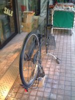 こんな時に・・・(その2) 愛用のママチャリ、パンクしてしまいました。実はこの自転車は、国道16号線一周を果たした記念すべき車両でして、愛着もあるわけで、おいそれと捨てられない。前輪はかなり以前修理したものの、今回は後輪。ちょっと手強い。ということで、自転車屋さんに持っていきました。さすがに手際よく10分くらいで直してしまいました。でも、いきなり5000円の出費は痛い・・・ |
