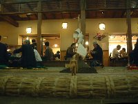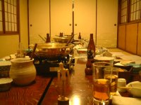 ![]() 今日は、部署の忘年会。 アンケートの結果、今年はなぜか、ちゃんこと言うことに。ちなみに、焼き肉は、一人2票分も投票した人がいるらしいですが、圧倒的多数でちゃんことなりました。 ちゃんこといえば、土俵のあるここと言うことで、やってきました。会社からはだいたい車で10分程度位だったでしょうか。入り口の暖簾からは、今はもう見られなくなった、田中邦衛が、「食べる前に飲む!」なんて言って、出てきそうな雰囲気といえば、もうすっかり年末という空気をおわかりいただけるでしょうか。たぶんこれじゃわからないと思います。 中に入れば、座敷はすべて埋まっていて、半月くらい前の時点で、ほとんど予約できないくらい混んでいたという状況がうなずけます。 ![]() せっかくですから、いつものダミーも土俵入りさせました。今回の撮影には、掲示板に登場いただいたことのある「板橋区役所前」さんと「ちぇ」さんに協力いただきました。ありがとうございます。ダミーからもよろしく伝えて欲しいとの伝言を受けています。 それにしても、撮影は困難を極めました。この土俵がうまく写真の中に入らないのです。土俵そのものはそう大きくないのですが、あまり後ろに引けないので、全体の雰囲気がなかなか伝わらなそうです。 ![]() 近づいて土俵を見てみると、土俵とても堅く、この上で力士がぶつかり合うと言うことが、にわかには信じられません。 日常生活で、土俵を間近で見る機会はありませんから、とても興味深く見せてもらいました。 店で用意してもらっている雪駄をはいて、土俵には誰でも入れるのですが、周囲の俵には踏まないように注意してくださいとのこと。 土俵の俵のすぐとなりで、飲み食いしている人がいるという光景は、なんだか不思議です。 書き忘れましたが、とても楽しい忘年会でした。 北海道から駆けつけていただいた、幹事のヨッシーは、お疲れさまでした。今日雪で丸一日かかって東京に着いたという感じでしたね。キーワードは、「悲しき口笛」、「厄年」、「Eチケット」ですが、プレゼントの用意はありません。あしからず。 ちなみに、僕は翌日も忘年会の予定が入っております・・・ |