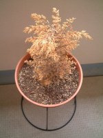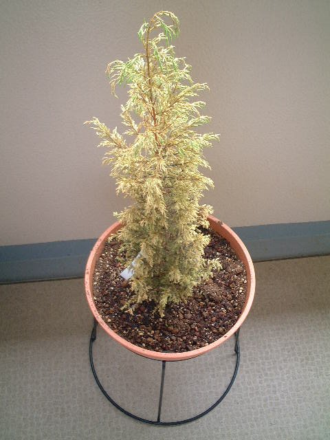 元気がない 早いもので、今日から2002年も後半。 おかげさまで、長引いていた風邪?の具合も良くなった。でも、ここんところ、ますます忙しく、落ち着いている間がない。 うちの鉢植えの中でここんところ元気がないのが、写真のゴールドクレスト。5月の連休頃に植え替えしてから、急速に元気がなくなり、今にも枯れそうな状態になってしまった。土曜日に、根が固まっていたのが原因かどうかわからないけど、一度根をほぐして、新しい土と鉢に改めて植え替えてみた。 果たして元気を取り戻すかどうか・・・? |