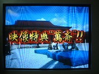 言っちゃった・・・ 今日は一日中雨。 おじゃこが借りてきていたビデオ「陰陽師」を見た。わかったような、わからないような内容で、まずまずといった感じかな。おもしろかった。物語の詳細についてはどこかのサイトでもご覧頂くとして、気になったのは、この画面。DVDが発売されるというCMなのだが・・・ 主役は、野村萬斎・・・ということで、特典”萬斎”とのこと。あぁ・・・言っちゃった。誰もが一瞬思いつくけど、あまりの”ベタ”さに、言うのをためらってきただろうに。 |