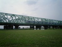 赤羽駅から商店街、住宅街を通り抜け、新河岸川と荒川が交錯して、隅田川が始まる岩淵水門にやってきた。この岩淵水門(赤門)はわが国の土木技術を語る上で、貴重な存在とのこと。ちなみに青門は、現在使用中の新しい水門。 荒川の土手を上流に向かって歩く。地図に載っていた「赤羽交通公園」を探しに行く。おじゃこが言うには、かつて電車の窓から小さな道路みたいなものが見えたらしい。期待しながら歩いてみると、それらしきものは、一切見当たらず、写真のとおり、野球場と原っぱに変わっていた。 |