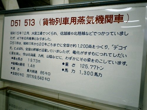 そろそろ書き直したほうがよいのでは・・・? 蒸気機関車は、北海道、九州、山陰でも、かなり以前から 観光目的以外では既に姿を消しています。 資料館なのだから、情報は正確にして欲しいと思う。 デゴイチじゃなくで、デコイチになってるし・・・