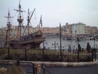 週間天気予報では、この土曜日は曇り時々雨ということになっていたので心配したが、低い雲に覆われてはいたが、ほんのわずかの小雨程度で、昼過ぎには、ときおり、晴れ間も見られた。そんな感じの天気のせいか、思ったより空いていて、主要なアトラクションは、ほとんど見ることができた。 とにかく感心したのは、あらゆる施設が実に凝っているということだった。はじめて見るものばかりなのに、どこか見覚えのあるような、不思議な空間だった。もし、そういった感覚がなければ、たぶん身体的な疲れに、精神的な気疲れにも似たようなものも加わってしまうだろう。”ハリボテ”を感じさせず”ホンモノ”を感じさせる造りは、そりゃ来る人を飽きさせないだろうなぁと感心させるには十分だった。ディズニーシーエレクトリックレイルウエイは、は、第三軌条から集電するきちんとした鉄道で、パーク内の公共交通機関として走っているところなど、鉄道ファンにはたまらないものがある。