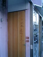 あとは明治通り沿いに一気に帰る。途中で不思議な廃墟?を見かける。入口のドアには、なんとも意味深な殴り書きが… |