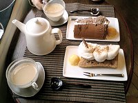 まるで隠れ家のような不思議な空間に… ![]() 東武東上線中板橋駅北口を出てすぐのところに、その店はある。店の名は、KOJIRO(こじろー)という。 幅1mもあるかないかくらいの狭く、かなり急な階段を上がる。階段を上がりきると、目の前にはシフォンケーキが入ったショーケース、3〜4席程度のアンティークな雰囲気の漂う椅子と窓際の鉢が目に入る…というか、店内はこれだけ。 あまりにこぢんまりとしているので、ショーケースに入ったシフォンケーキがこの場で食べられるとは、知ってなければわからない気がする。 ![]() 実は訪れたのは今回が2度目。前回は満席(と言っても3人だけど)だったが、今日はお客さんがいない!これ幸いと、早速シフォンケーキ(ぼくは、シナモン、おじゃこはチョコレート)を注文する。カフェオレも頼む。しばらくしてカフェオレが出てきた。カフェオレは、一緒に出してくれたポットにも入っているので、自分で継ぎ足すことができる。たいていは一杯しか飲めないことが多いが、もうそれだけで嬉しくなってしまった。 ![]() 窓の外に目をやると、準急・急行列車の通過待ちをする各駅停車が、中板橋駅に比較的長い時間止まってるので電車の姿がずっと見られる。 しばらくして、待望のシフォンケーキがやってきた。めいっぱいの生クリームでデコレーションされ、その隣にはアイスクリームで脇を固めている。しっとりしていて美味しいのはもちろん、すごく丁寧に作られているなと感じる。 まるで隠れ家のようなどこか不思議な空間で、通過列車の振動に揺られながら過ごしたひとときは、最近感じたことのない心地よいものだった。値段も330円(シフォンケーキ)と比較的リーズナブルだったことも嬉しかった。シフォンケーキは週替わりらしいので、また是非来てみたい。 |