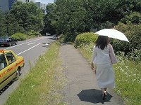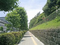 赤坂御苑に沿って青山通りを歩く。昼前だったこともあって日差しが一段と強くなってきた。太陽はちょうど真上。地図だと緑に沿っていることから、歩きやすそうに見えたのだが、実際は青山通りと御所の間は高い土手で隔てられているので、なんのことはない、普通の国道の歩道を歩いていくに過ぎない。当たり前なんだけれど。暑くなってきたせいか、あまり人の姿がない。