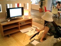 まだ明るかったので、大手町駅まで歩くことにした。丸の内を通り過ぎようとしたところで、インテルのイベントを見かける。あまりに人が少なく、受付の人たちがやけに明るく振る舞っていたので入りにくかったが、思い切って入ってみた。インターネットはもちろんコンピュータを使ってその場でさまざまな体験ができるというイベントのよう。ゆったりとしたスペースに腰を下ろすと、無料でコーヒーをいただけるという(アンケートに答えるという作業と引き替えだが)、まぁなんとも至れり尽くせりといった感じだった。ちなみにこのイベント、8月5日までらしい。 |