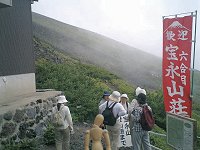 ちょっとした渋滞に巻き込まれながらも、11時前には富士宮口五合目に到着し、すぐに出発。六合目の山小屋までは山頂までの登山道と同じコースを辿る。六合目の山小屋までは約20分程度。もちろん山頂までの道のりを考えたら序の口なのは言うまでもないが、たかだか20分程度で六合目まで来られのだったら、意外と行けてしまうんではないかと思ってしまいそうになるが、前回登った経験から言うと「そんな甘いもんじゃない」。山頂への登山道は山小屋の裏から一直線に登っていく感じだが、宝永山方面は水平もしくは下っていく感じだ。
