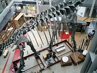 博物館全体が、恐竜を研究している研究施設に見立てられていて、標本倉庫や標本を作る部屋などが並び、飽きさせないような造りになっている。全体的にスタッフが多いので、どこか見張られているような感じがしてしまう。もちろん気軽に声は掛けられる感じなので、息苦しさといったほどではないし、実際にじゃこが質問しても、わかりやすく説明してくれる雰囲気には好感が持てた。実際に研究している人とも話をさせてもらったなかで、興味深かったのが、レプリカの存在だ。ここに展示されている標本は、実物とレプリカがだいたい半々くらいとのことだが、このレプリカは「偽物」ではなく、このレプリカ自体で十分研究ができるほど重要なものなのだという。もし実物ばかりでしか研究ができないとしたら、研究できる人数は当然限られてくるし、何より実物は化石というだけかあって「石」なので、かなりの重量があり、とても持ち上げたり組み立てたりできるものではない。そんな使いにくい実物より、実物を忠実に再現したレプリカの方が研究しやすい一面があるのだという。