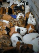なぜ? 近所のこども動物園にて。 モルモットを抱かせてくれるとあったので、その所定の時間まで待つ。係りの人が一匹、一匹連れてきてもらって、抱かせてもらう。で、そのモルモットが入っているところには、それはそれは、過密状態のモルモットがたくさん。しかも、その多くは、巣のある方向に、向かって、なんともいえない鳴き声(クピ クピ クピ…?)をあげていた。なんか、不思議な光景であった。 |