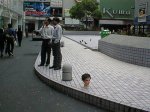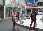 朝の新宿コマ劇場前にて。 何か視線を感じる。 あれは何? |