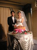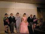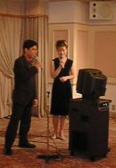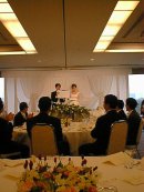 | その後、2次会がありました。立食パーティー形式。そこでは、もう、僕は酔ってしまって、ほとんど、何も食べることもできず…苦しかった… 新郎、新婦がカラオケで、何か歌うとの事…何だろうと聞いてみると、”ギンコイ”…? 一瞬なんだろうと思ってたら、”銀座の恋の物語”でした…(笑) |