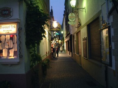リューデスハイムの横道。まだ朝が早いせいか人影はまばら。それにしても、どこを撮ってもどことなく絵になる。