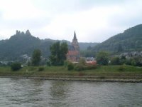ライン川をゆく船乗りたちが、この岩の上で、美しい少女が歌を歌う姿に見とれているうちに、船の操作を誤ると言われた場所らしい。確かにこの部分だけ、他に比べて、川幅が狭く、流れが急になっている。昔からライン川の難所で知られるところとのこと。