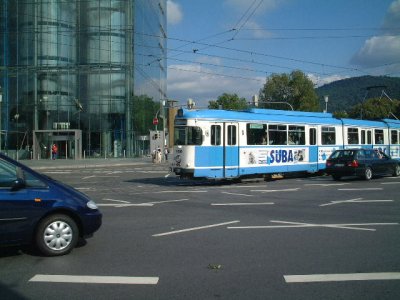 ドイツ最古の大学、ハイデルベルク大学(1386年創立)を擁する大学の街。市内中心部は、トラム(市内電車)が走る近代的な部分(写真左)と、その隣にかつての中心街だった古い街並み(写真右)がそのまま残る。