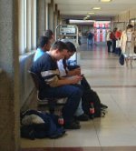 ここでも、携帯電話に夢中になる学生の姿が・・・