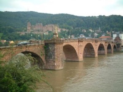 市内で一番古い橋から、ハイデルベルク城を望む。絵はがきにもある、ありがちな風景。