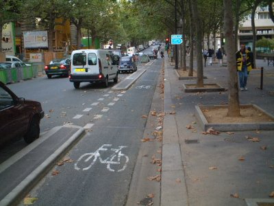 すぐに気づいたのが、歩道と車道の間にある自転車専用道路。日本の大都市では、まずこんな余裕はないだろう。ただ、パリだって車道に余裕があるわけじゃないようで、渋滞は東京と大して変わらない。けど、こういう配慮がなんかパリらしいというか、日本では考えられない気がする。