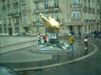 ダイアナ妃が、交通事故で亡くなった現場がここ。時は経ても、花束が絶えることはないという。ちなみに、金色のオブジェは、事故現場として"有名"になってしまう前からあり、皮肉にもこれが、よい目印となっているとのこと。