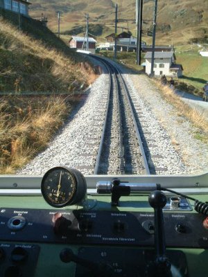 | 車両最後尾からクライネシャイディック方面を見る。運転席は、車両のこぢんまりといった雰囲気とは似つかわしくない計器が並んでいた。 |