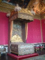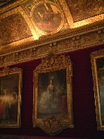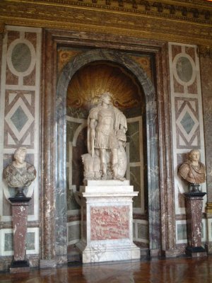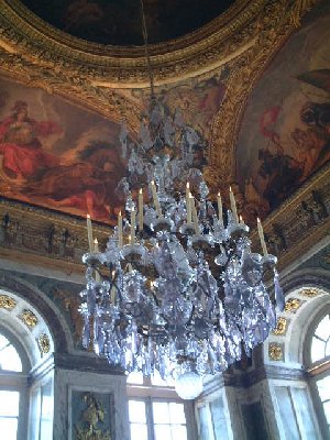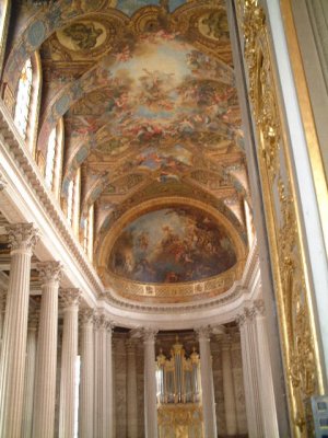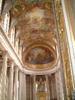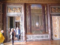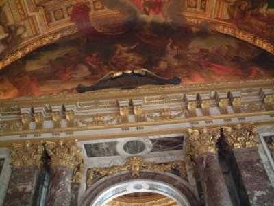 | まぁ、ヨーロッパの歴史的建造物は、どこもそうなのだが、訪れる人に飽きさせないように・・・というつもりもないのだろうけど、至る所に装飾が施され、休む間もない。写真左が、日本ではやたら有名な、マリーアントワネット。フランスでは「なぜ日本人はマリーアントワネットのことばかり聞きたがるのか?」と不思議がる人もいるらしい。 |