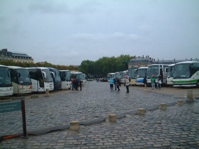 世界中から、観光客が押し寄せるパリ。フランスは、世界でもっとも外国からの観光客を受け入れている国と聞いたことがある。写真は、ヴェルサイユ宮殿前の駐車場。