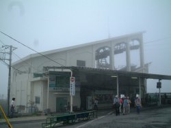 | やっと、さっき出発した、ロープウエイの那須岳山頂駅に着いた。 | ![]() |