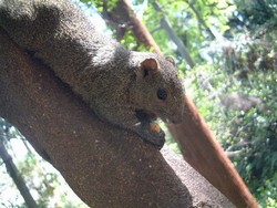 ![]() 佐助稲荷神社 源氏山公園をさらに進み、山道を辿っていく。これまでもたびたび訪れたことのある佐助稲荷神社に着く。ここに着くまでの間にも、あちこち見かけたが、この付近一帯は、リスが多い。種類は「台湾リス」というから、まぁ台湾からやってきたんだろうけど・・・と、ちょっと調べてみると、どうやら一個人か小さな動物園から逃げ出して野生化したらしい。かなりの繁殖力で、増えすぎて困ってるらしい。気軽に餌をあげちゃいけなかったかなぁ・・・ |