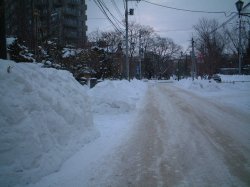 旧道庁舎に来た。ここでも、雪だるまの世界新記録を目指しているようで、歩道の両脇には、たくさんの雪だるま達。旧道庁舎前にたたずむ、この最も大きな雪だるまは、道庁職員の皆さんの手によるものらしい。 |
