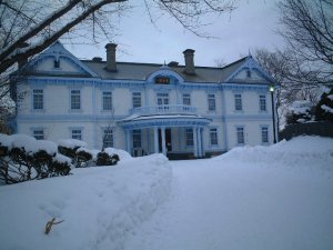 中島公園を通り抜けて、ホテルに帰ろうとしたら、このような建物に出会った。"豊平館"という名前だった。近くを流れる豊平川(とよひらがわ)というので、当然その名前になるのかと思っていたら、「ほうへいかん」というらしい。