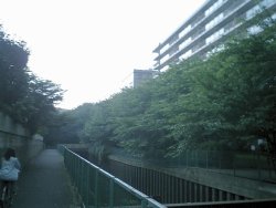 川の周囲は走りやすくなっているけれど、どこか川との距離を感じる雰囲気。川とマンションの間には、芝生を敷き詰めた広場があって、すごしやすそうだったけれど。