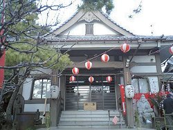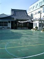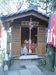 敷地の一部が幼稚園になっているというお寺はよくあるけれど、ここでは幼稚園を横切らないとお寺の本堂に行けなくなっている。肝心の大黒天は、この本堂の真向かい。やはり幼稚園の敷地に面した形で置かれている。