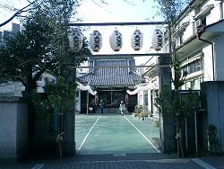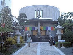 ちょうどこのあたりを地上に姿を現した丸ノ内線が走っている。丸ノ内線のガード下をくぐって拓殖大学の方に向かう。丸ノ内線の車内からは何度もこのあたりの風景を見かけたが、歩くのは今回が初めて。ここは他のお寺と違って少し上った高台にあって、お寺らしいたたずまいをもったところだった。ご神体である恵比寿さまは、もともとは掛け軸だったが平成六年に石像が作られたとのこと。見た目じゃわからないけど、なんと重さ三トンもある巨大なものらしい。言われはよくわからないけど、隣にはキリシタン灯籠というのがあった。確かに、灯籠の下の方にマリアさまらしき姿が見える。