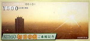 入場料は60階に上がってから支払う。この初日の出記念ということで、入場券も特別仕様。通常は620円だが、たまたま割引券を持っていたので、500円だった。