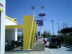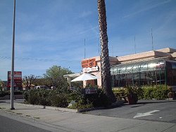 会社に着いてから一度ホテルにチェックイン。ちょうど昼頃だったので、すぐに昼食を食べに行くことになった。ドライブスルーのあるハンバーガーショップへ。ずいぶんあたたかい…というより、暑い!ずっとこんな感じということではなく、今日がたまたま暑いらしい。 |