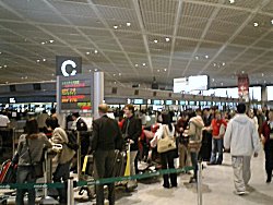 落ち着いて、よく見てみると、その近くの欄に838便という文字が見えた。ただ出発時間は18時50分発にとなっていた。おかしいなと思いながらもチェックインのための列に並ぶ。それにしてもやけに長い。ホストコンピュータの故障によるものという放送があった。しょうがいないなと、列に並び続けていた。しばらくして警備員風のおじさんに、手荷物がすべて機内持ち込みだったら並ばないでいいと言われ、導かれるままチェックインカウンターへ。その時間わずか1分。もっと早く案内してくれ…