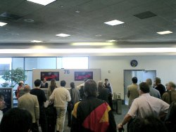 | 今回は何もかもが初めての経験になるが、帰るところまでちょっと不安だった、というのも、帰りの便の予約がいっぱいで、サンフランシスコから直接帰ることができず、途中ロサンゼルスを経由しなければならなかった。まぁ何事も経験…ということで、引き続き滞在する会社の方にサンフランシスコ空港まで送ってもらう。まずは国内線で移動するんじゃないかということで、国内線の出発口へ。途中通訳してもらいながらも、なんとか搭乗手続きにたどり着く。あとは手荷物検査を通り抜ければおしまいというところで、やはり?つかまった。 金属探知器に引っかかってしまった。靴を脱がされても駄目。別の場所に移されて、手持ちの金属探知器で頭から腕、胸、背中などをたどっていくが、何にも見つからない。そしてポケットのあたりで反応する。