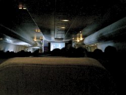 とりあえずここから乗れば帰れるということがわかってよかったんだけど、今度はまだ、出国手続きをしないまま、そのまま帰っちゃっていいのか?という不安にさいなまれた。日本語を話しそうな係の人に聞いてみたら、この場で手続きをしてくれた。入国の際の物々しさと、うってかわって拍子抜けしてしまうくらい簡単だった。 帰りは座席番号がやたら大きい数字だったので、イヤな予感はしたのだが、そんな予感は確実に的中するものだ。ジャンボジェット機の最後尾の列からひとつ前の列。ここまで後ろに座ったのは初めて。映画のスクリーンも真正面だが、かなりの距離があるのでたくさんの頭に遮られほとんど見えない。また、ここは座席と座席の間に挟まれた席で、かなり窮屈。 まぁ、どうせ映画なんかも見ないだろうから、食事でも楽しんで…なんて思っていたら、後ろの列の悲しい現実。これくらい後ろになると、食事の選択肢はなくなってしまい、本来はビーフとチキンと選べるはずなのに、「申し訳ありませんが、チキンのみとなっております。ご了承ください」と有無を言わさぬ状況に…。 成田空港には定刻通り到着。 |