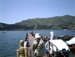 箱根ビジターセンターは無料で建物自体が新しい感じできれい。箱根の自然を学ぶことができる。ラウンジのベンチに座っていると穏やかな日の光が入ってとたんに眠くなり、気を失いそうになった。大きな窓からは、芦ノ湖を進む観光船の姿が見える。観光船の本数はそう多くなくて、30分〜40分おきしかない。そろそろ出発して対岸に渡らないと。 |