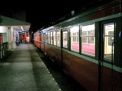 ふたたび今朝最初に降りた箱根湯本駅に戻ってきた。20時ちょうど発の強羅行きの登山鉄道に乗り込む。このくらいの時間になると、観光客らしき人たちは全くおらず、地元と思われる人たちばかりで、一車両に2〜3人程度。 今日宿泊予定のホテルに一番近い、小涌谷駅に20時28分に到着。本来ならば、ここでバスに乗れば数分で到着するのだけれど、この時間ではバスも1時間に1本…ということで歩いて向かうことになる。この判断はやむを得ないとはいえ、その後僕たちは、つらい試練を課せられることになった。大きな荷物を抱え、坂がきつい上に、周囲は暗い。そのためか距離感がつかめないこともあり、疲れが一層ひどくなった。2キロ以上歩いただろうか。21時過ぎくらいにホテルに到着。ここにも大浴場があったので入っておく。 |